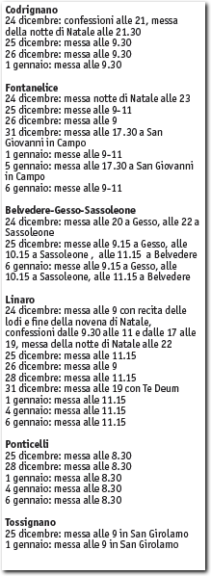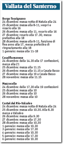 ORARIO FUNZIONI DELLE FESTIVITA'