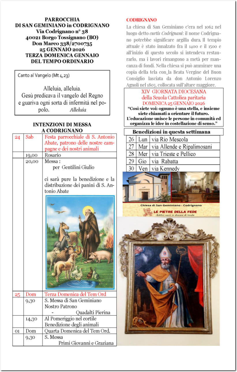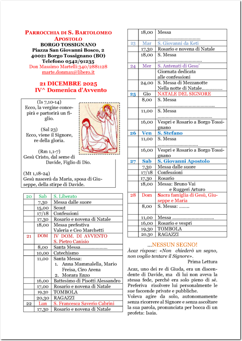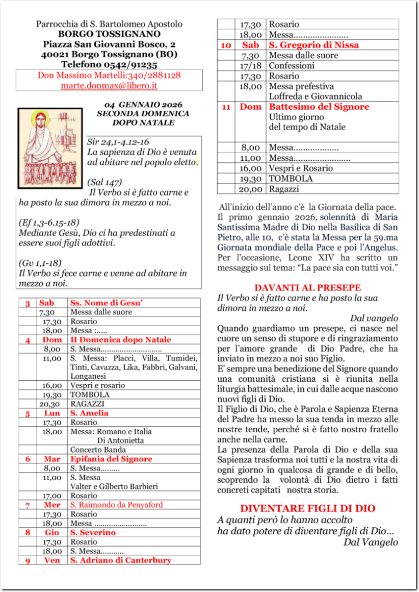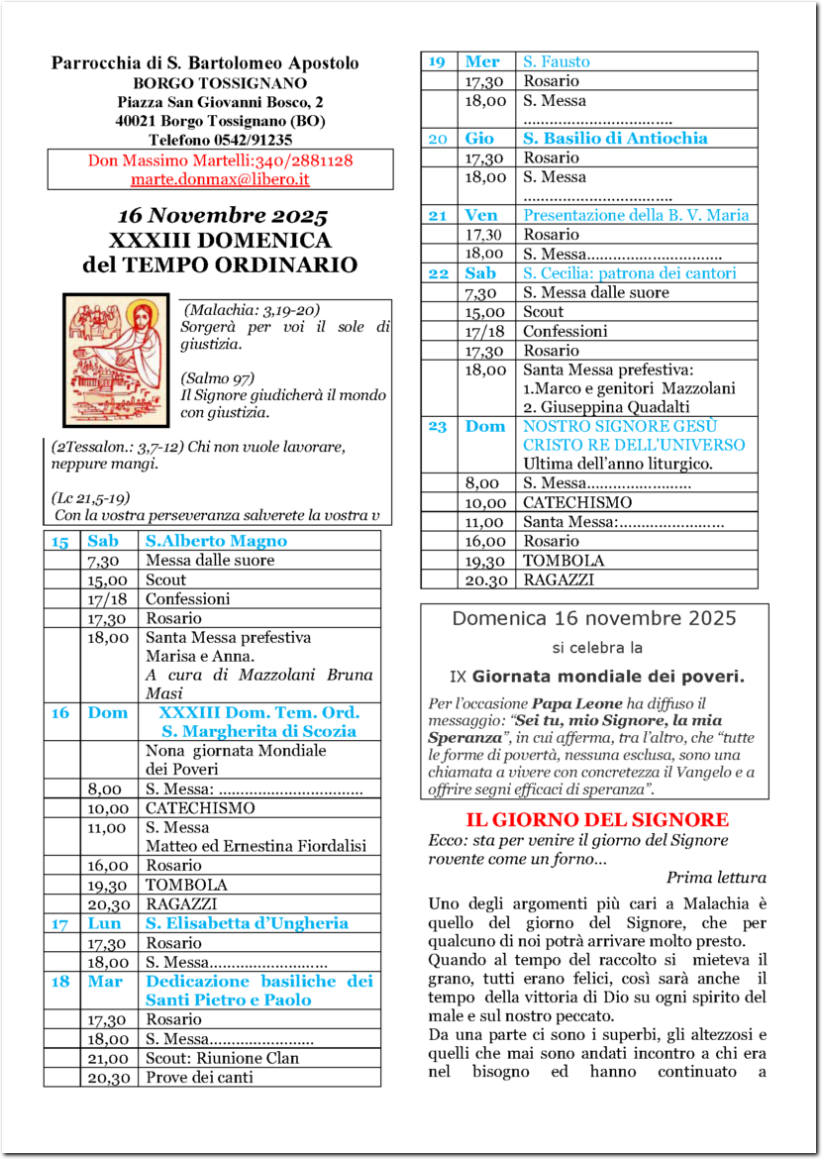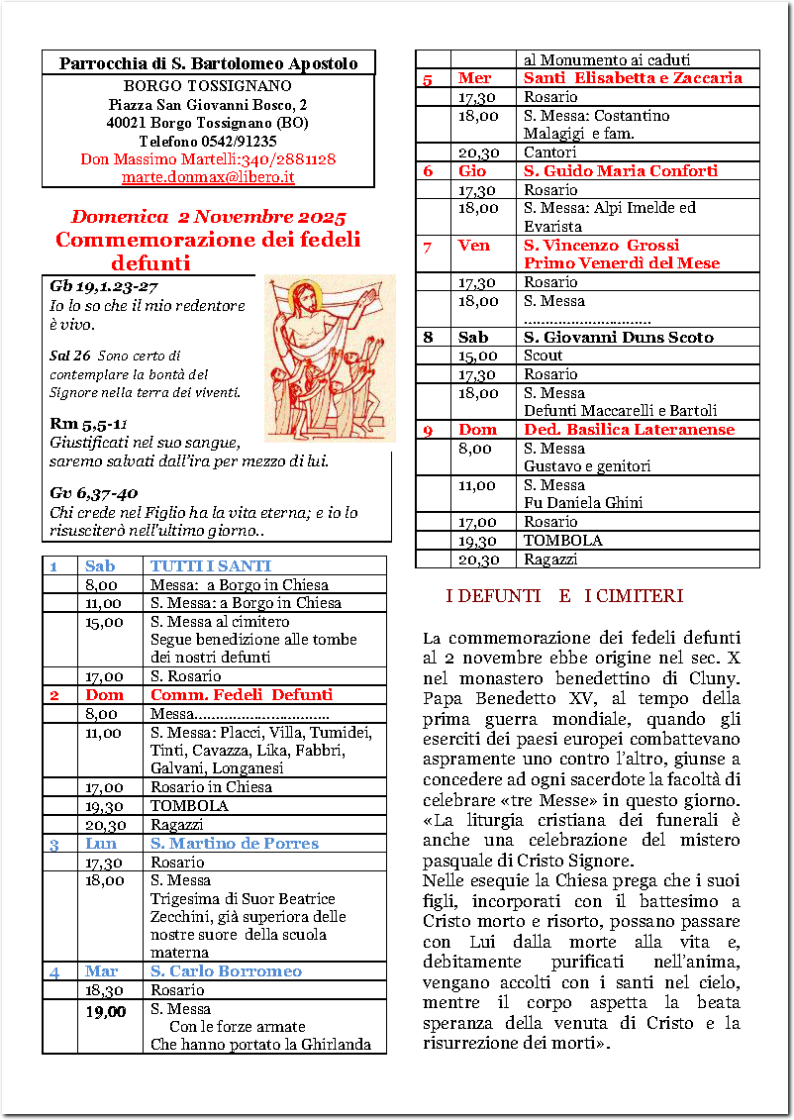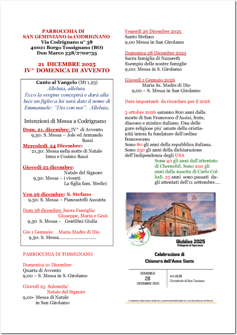 | INCARICHI | ARCIPRETE: Don Massimo Martelli-cell: 340 2881128 EMERITO: Don Marco Baroncini -cell: 338 2700735 |