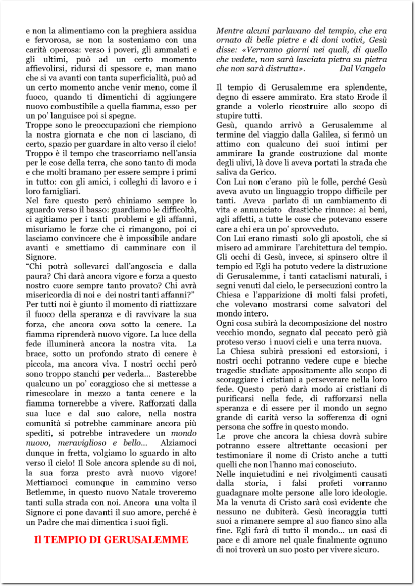 OFFERTE PER LE NECESSITA' DELLA PARROCCHIA