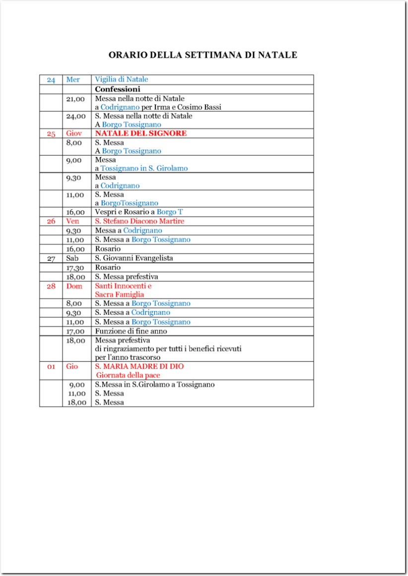 | ORARIO MESSE | FESTIVO: ore 8, ore 11.PREFESTIVO: ore 18.; FERIALE: ore 18. |