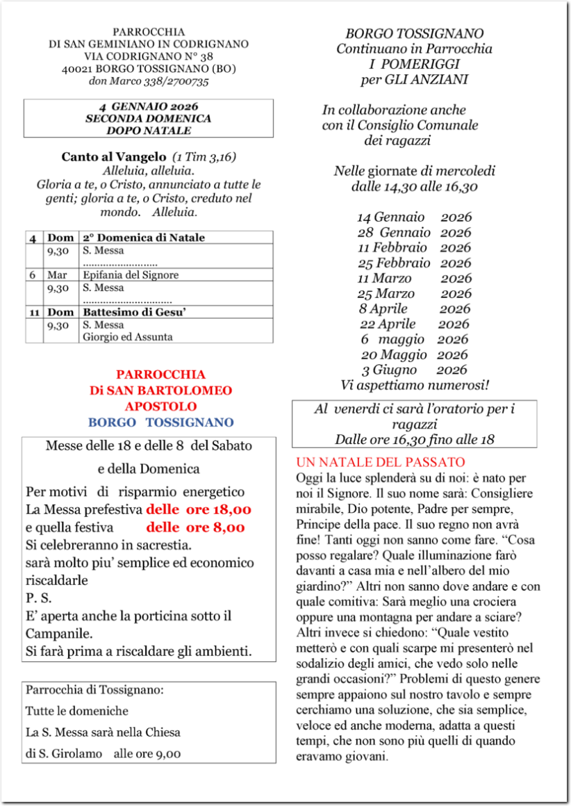 | INDIRIZZO | P.zza San Giovanni Bosco, 2 – 40021 Borgo Tossignano (BO) |