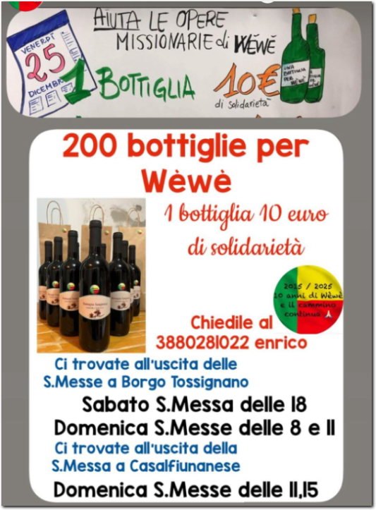 Ti chiediamo 10 euro, in cambio ti diamo una bottiglia di Sangiovese “Amico di Wèwè” (lo sappiamo, non è poco ma è beneficenza).