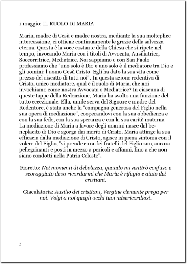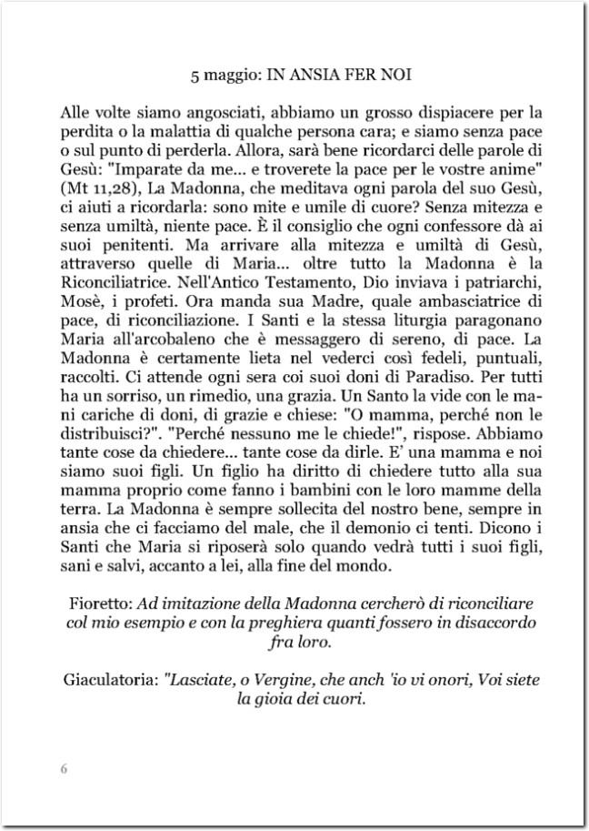 RIFLESSIONI SUL MESE DI MAGGIO